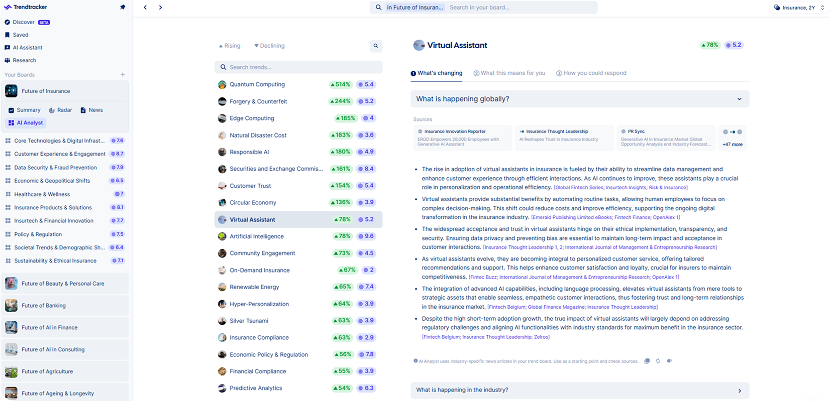Trendtracker helps you cut through the noise by ranking signals based on maturity, relevance, and expected impact. You can see what’s emerging, what’s gaining traction, and what’s fading — all in one place.